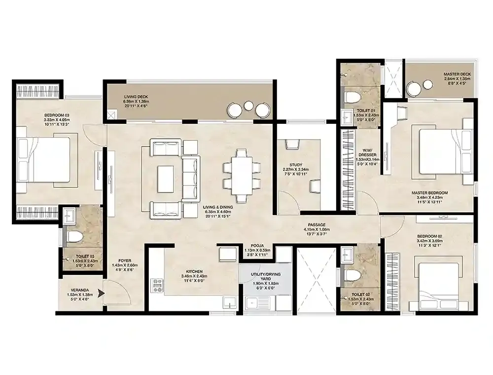 • Bedrooms 3, 3.5 & 4 BHK